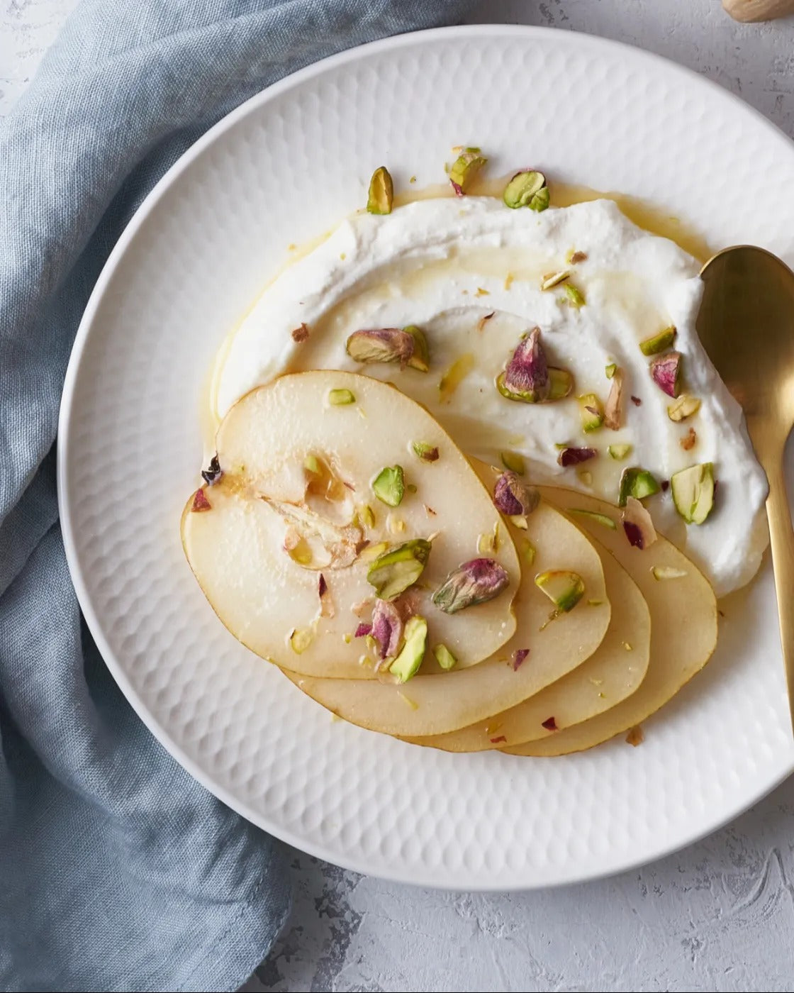 A decadent blend of bright pear and apple, sweetened by sugared violet and creamy caramel praline, offering a delightful fruity gourmand scent.