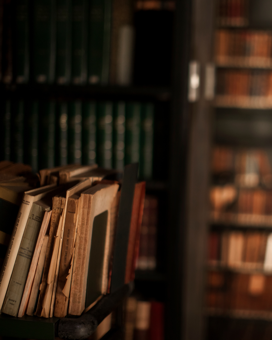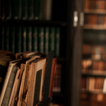 Aged leather-bound books with hints of mahogany and vanilla.