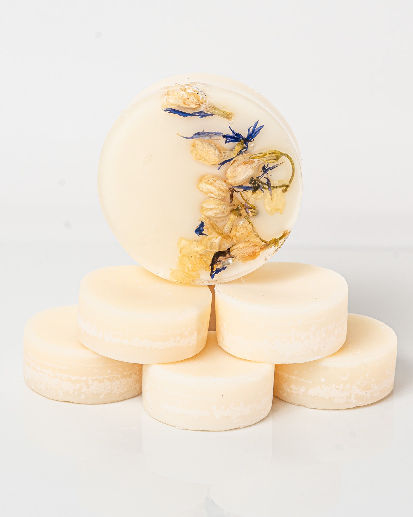 Elevate your à la carte order by adding a 2 oz decorative wax melt, elegantly accented with stunning white and blue flowers found in nature, for just $2!