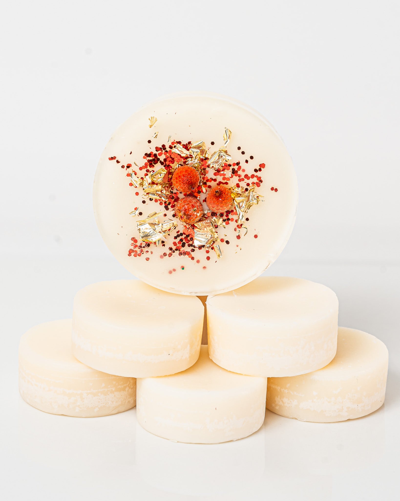 Elevate your à la carte order by adding a 2 oz decorative wax melt, elegantly accented with biodegradable glitter, real red berries and gold leaf, for just $2!